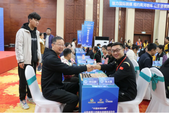 11月2日,“中国体育彩票”山东省第十四届全民健身运动会国际跳棋比赛在聊城开幕,山东省棋牌运动管理中心国际跳棋项目负责人赵科、聊城市全民健身服务中心副主任牛广琛,聊城江北水城旅游度假区教育和体育局体卫艺科科长常静,中国国际跳棋国家集训队总教练、山东省国际跳棋队总教练孙连成,山东王冠体育文化发展有限公司董事长王杰,国家级裁判、本次比赛裁判长谢锡荣,以及各代表队领队、教练、运动员、裁判员和部分家长出席开幕式。